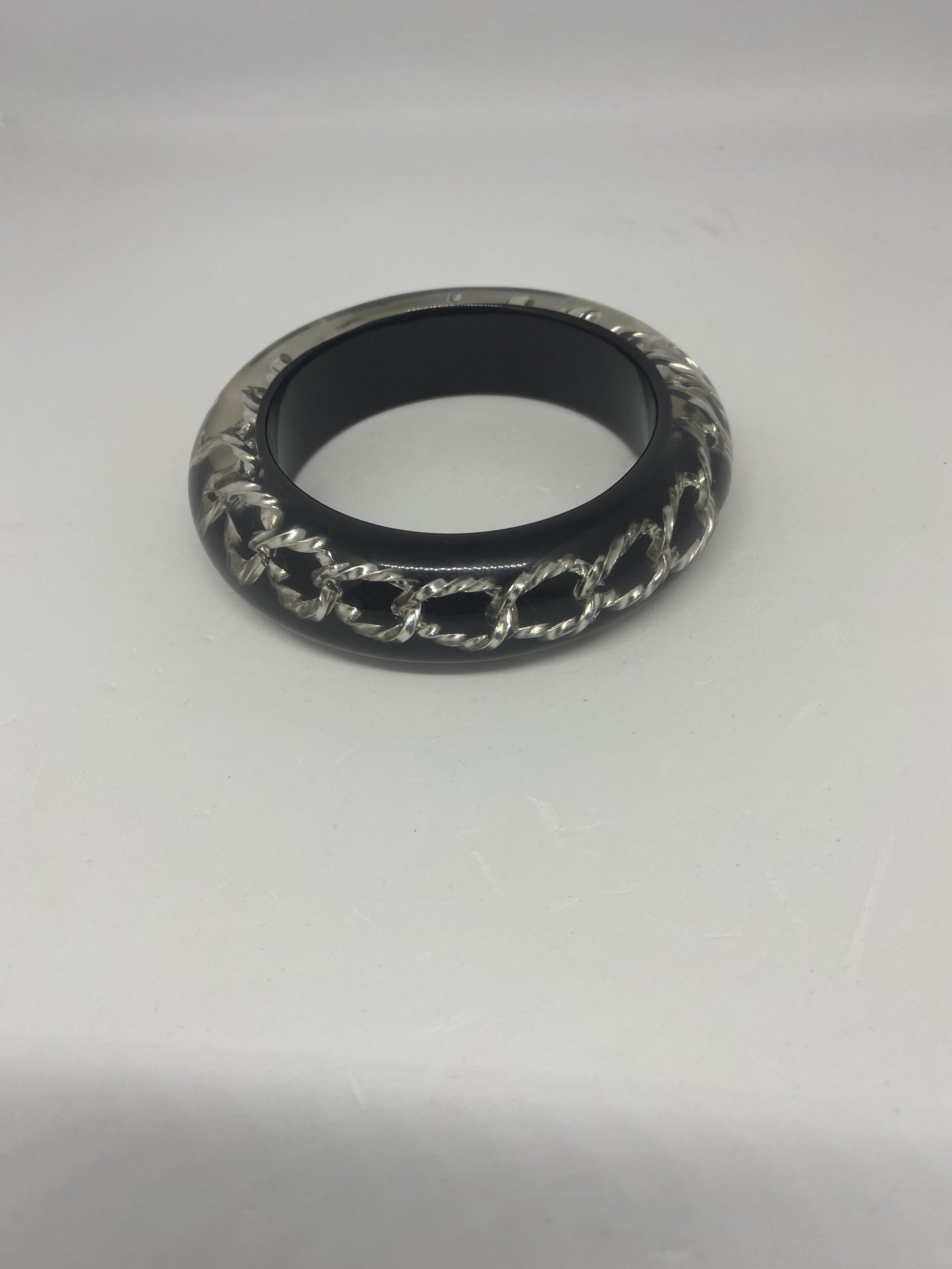BLACK & SILVER CHAIN EFFECT RESIN BANGLE