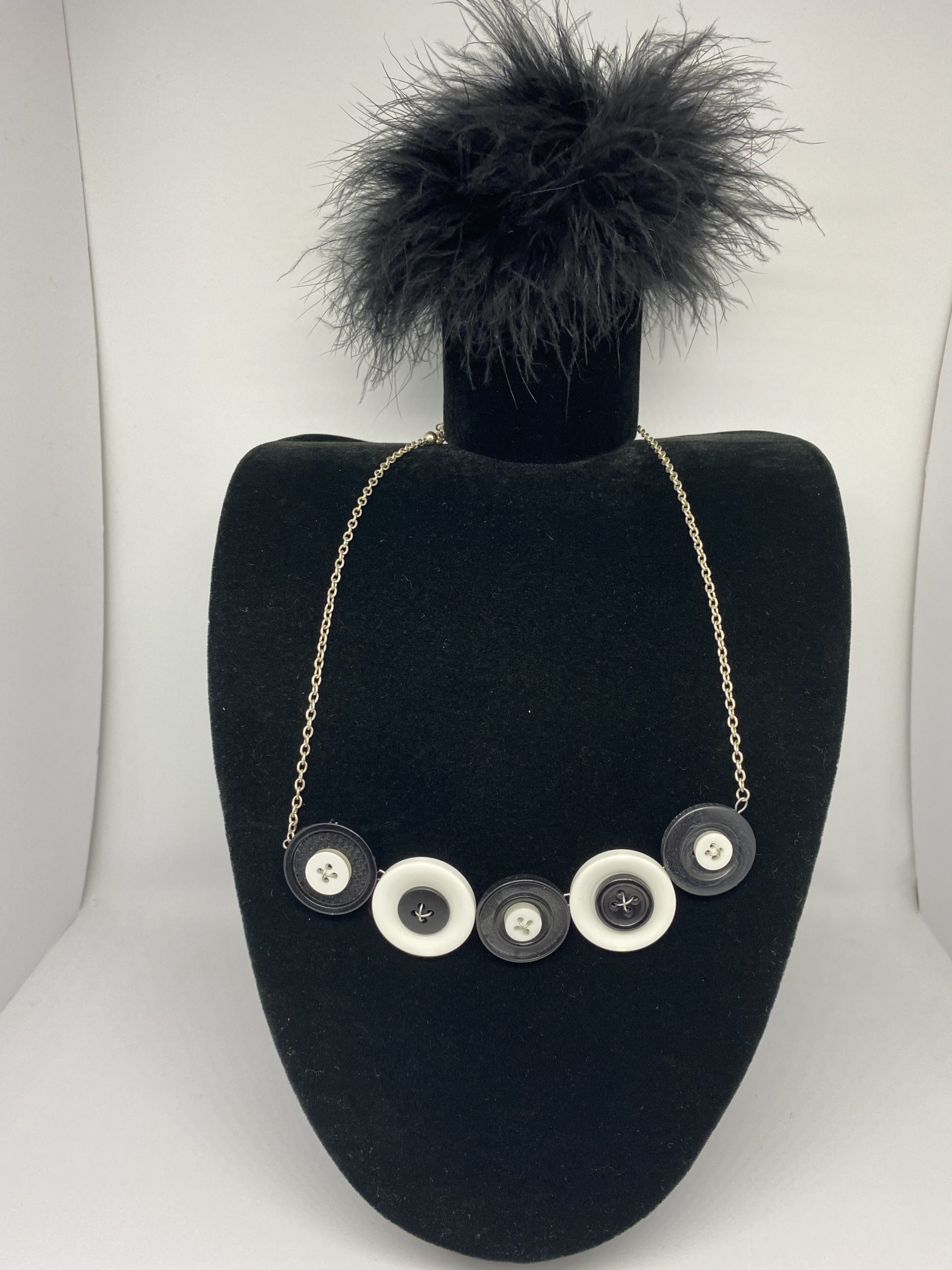 BLACK & WHITE BUTTON HANDMADE NECKLACE