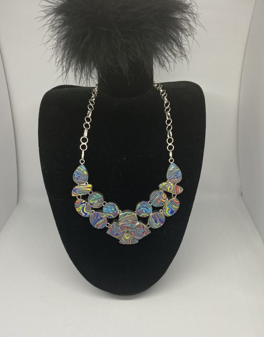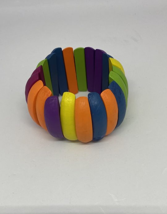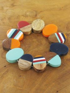 Boho/vintage inspired resin & wood vibrant coloured elastic bracelet.