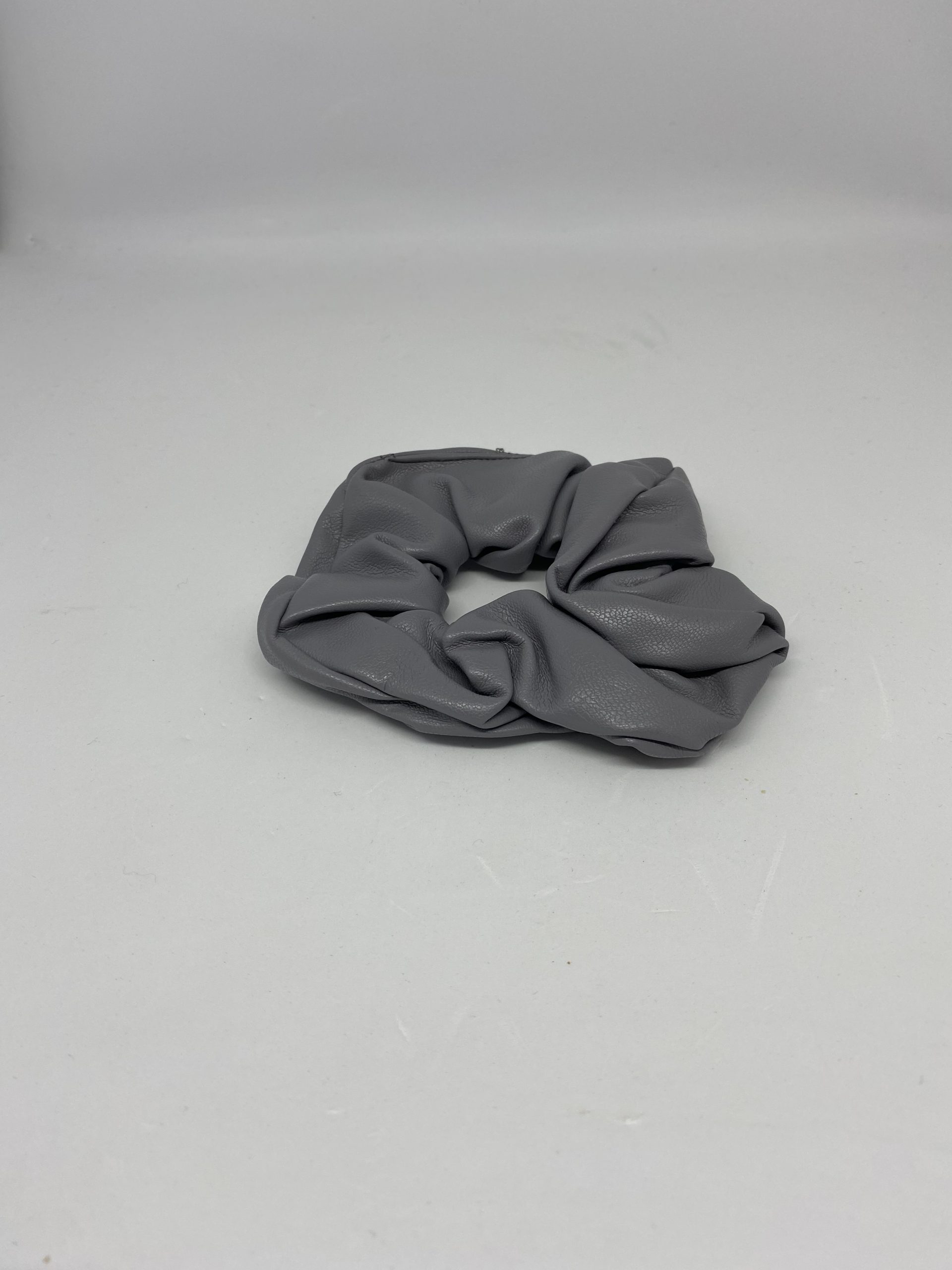 GREY VEGAN LEATHER FABRIC SCRUNCHIE