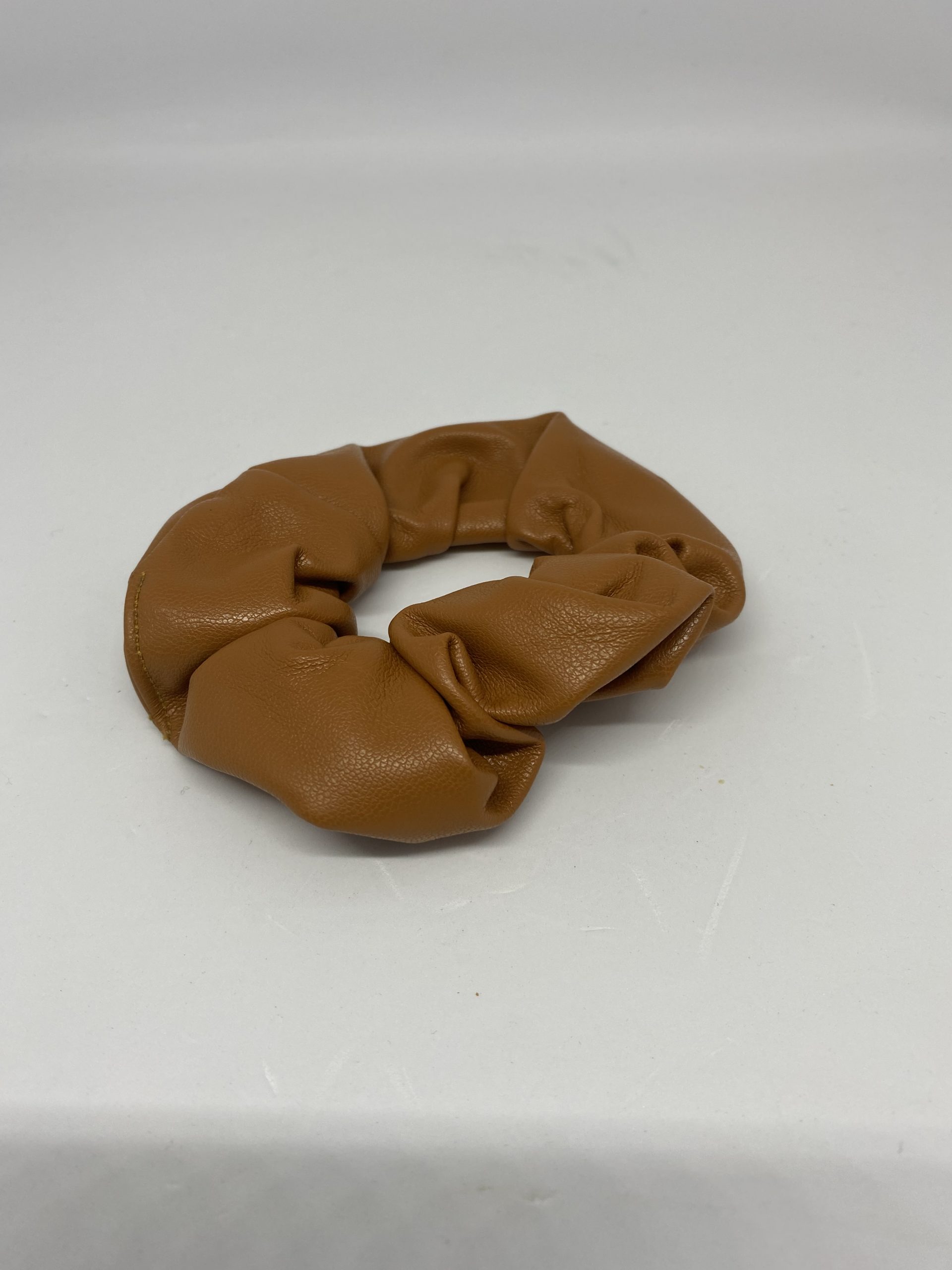 3. LIGHT BROWN VEGAN LEATHER FABRIC SCRUNCHIE