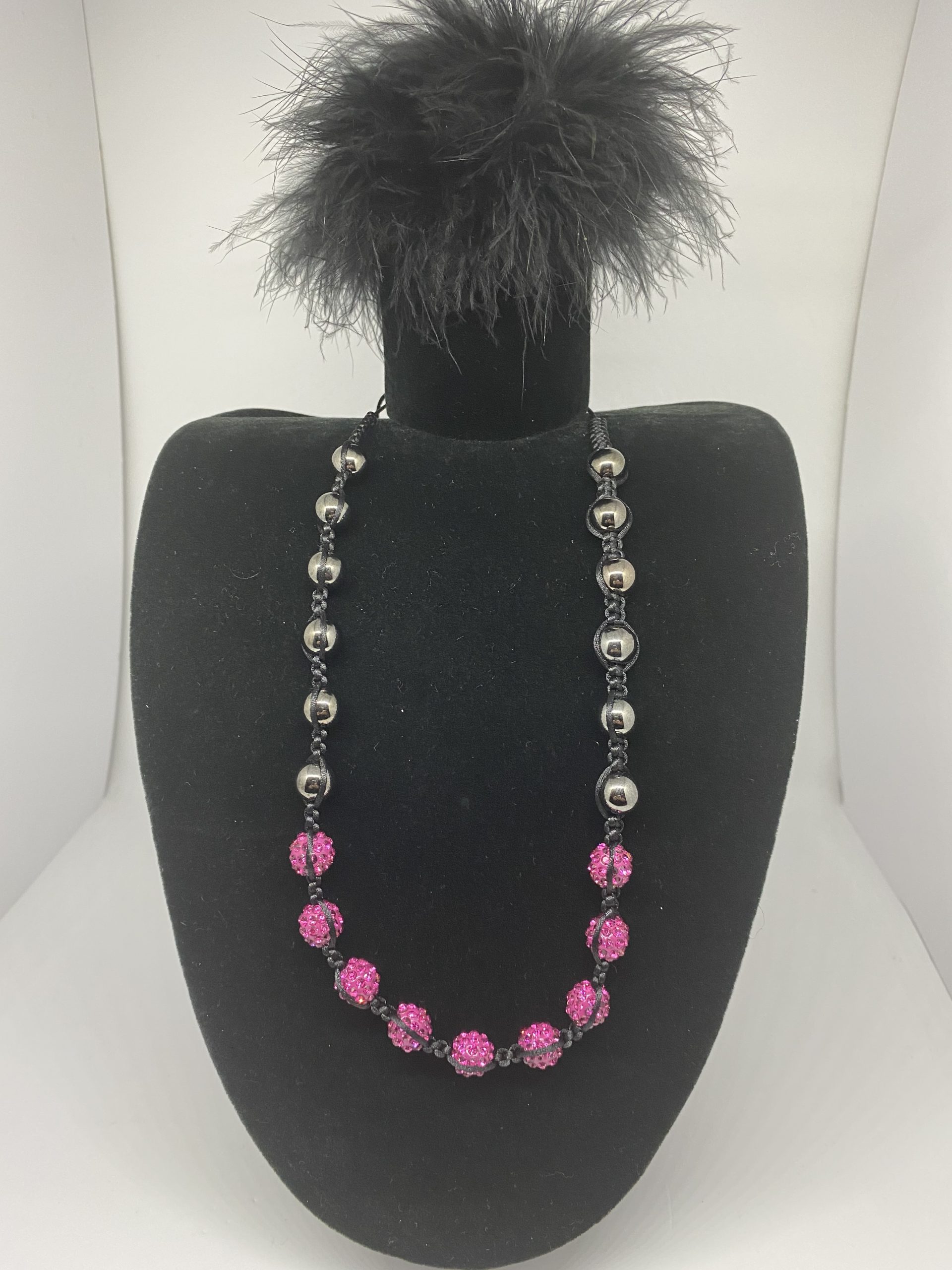 Pink & black glitzy ball effect necklace.