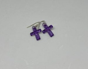 A lightweight pair of cross pierced earrings in vibrate purple.