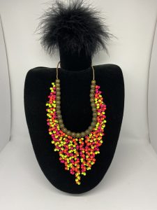 ELASTICATED RESIN & WOOD OVAL BRACELET