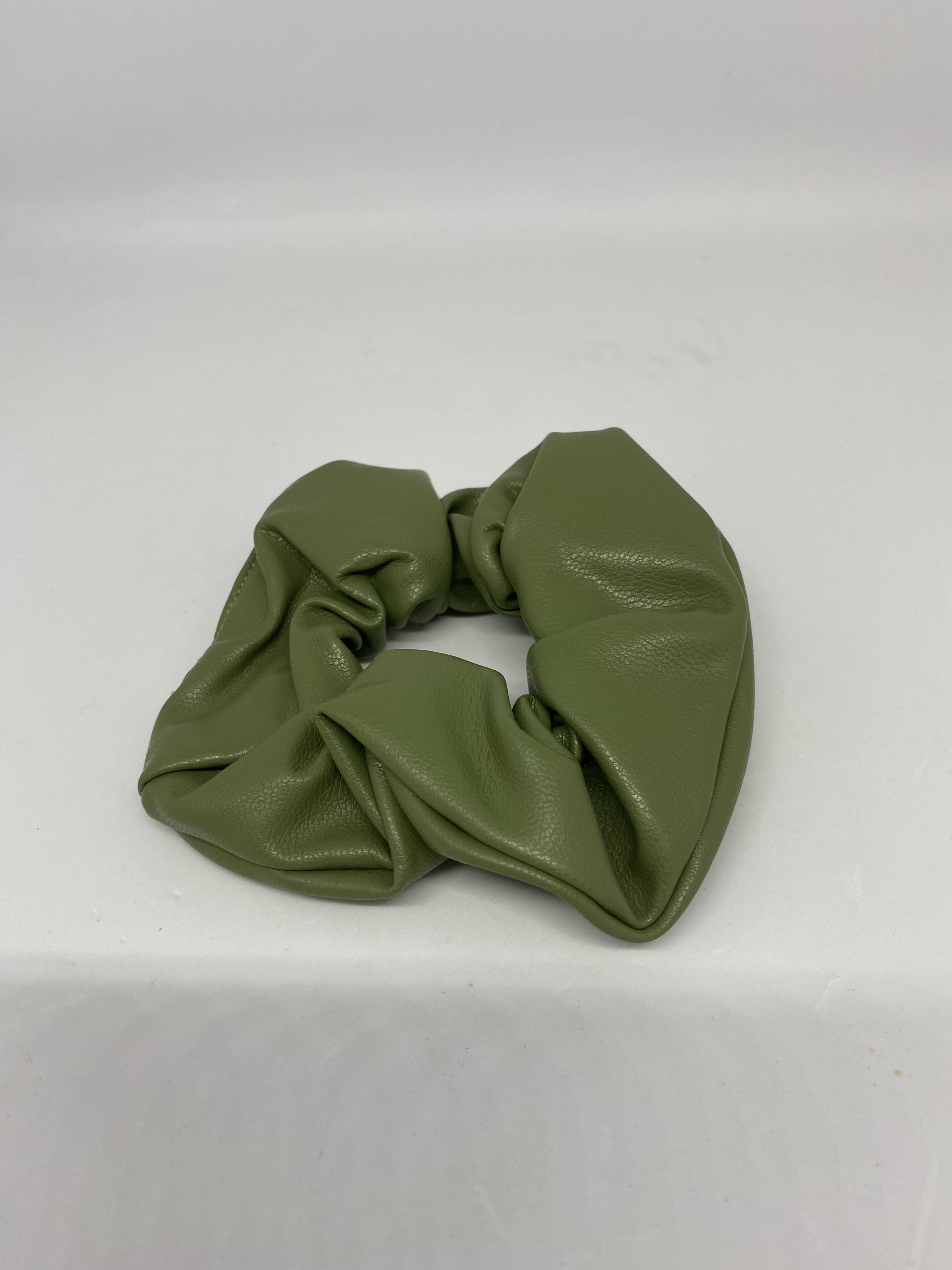 3. VEGAN GREEN LEATHER FABRIC SCRUNCHIE